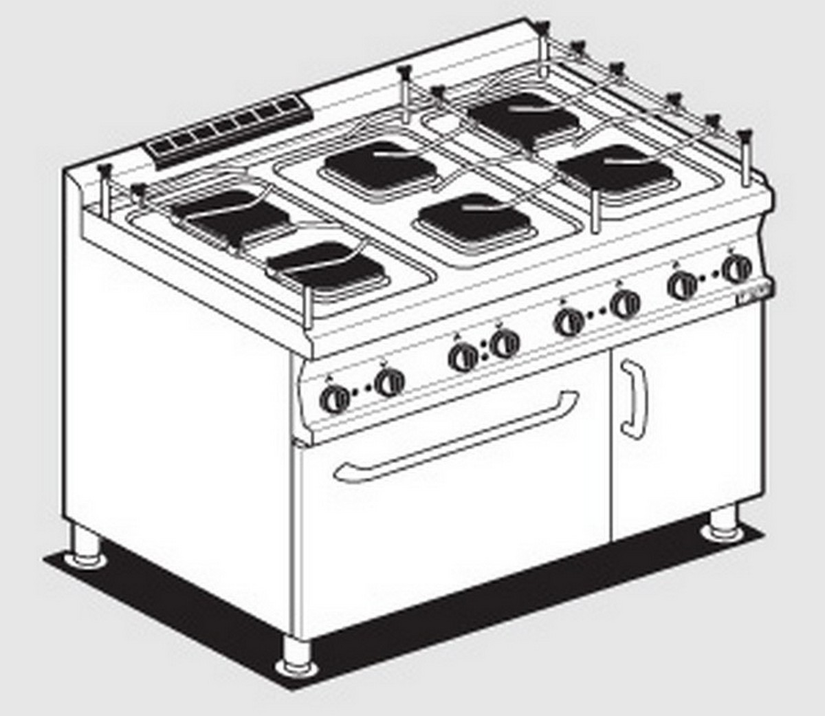 The removable liquid basins and the round cast iron plates will guarantee easy maintenance of your kitchen. The temperature of our static electric oven, with grill or multifunction, will reach 300 °.