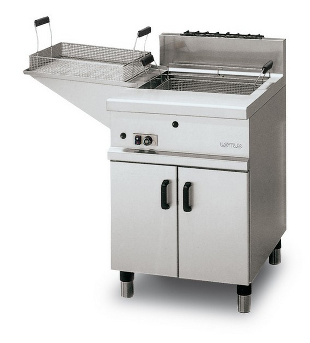 Our professional fryers will be composed of a double thermostat (working and safety) and a front oil drain. The cleaning of the tanks will be facilitated by the removable resistance door panel.