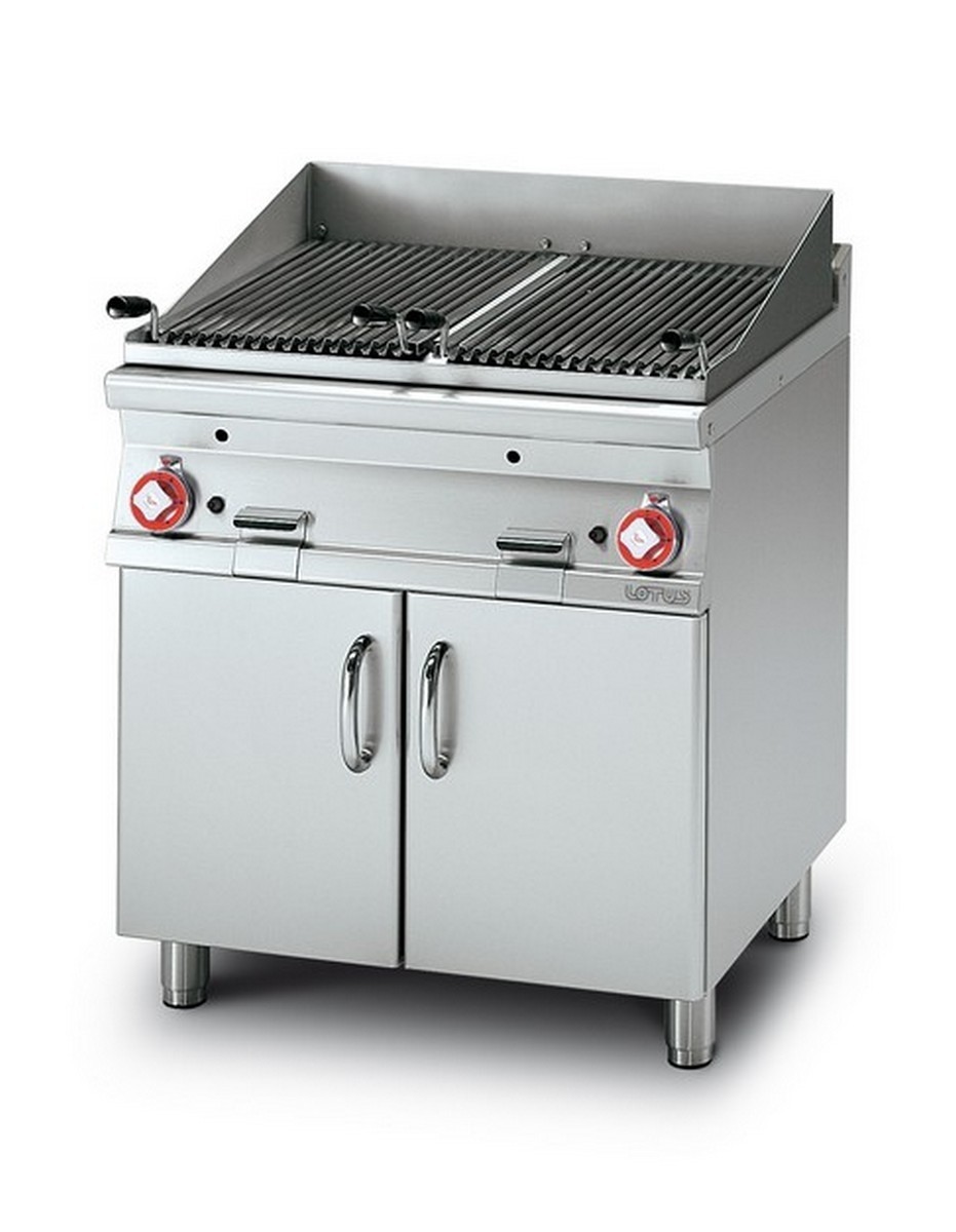 These lava-stone grids on open furniture will be equipped with a stone container to heat them up by means of underlying burners. Helping you get a cooking similar to those on wood embers. Equipped with half-pilot burners with piezoelectric ignition, valves with safety valve and thermocouple.