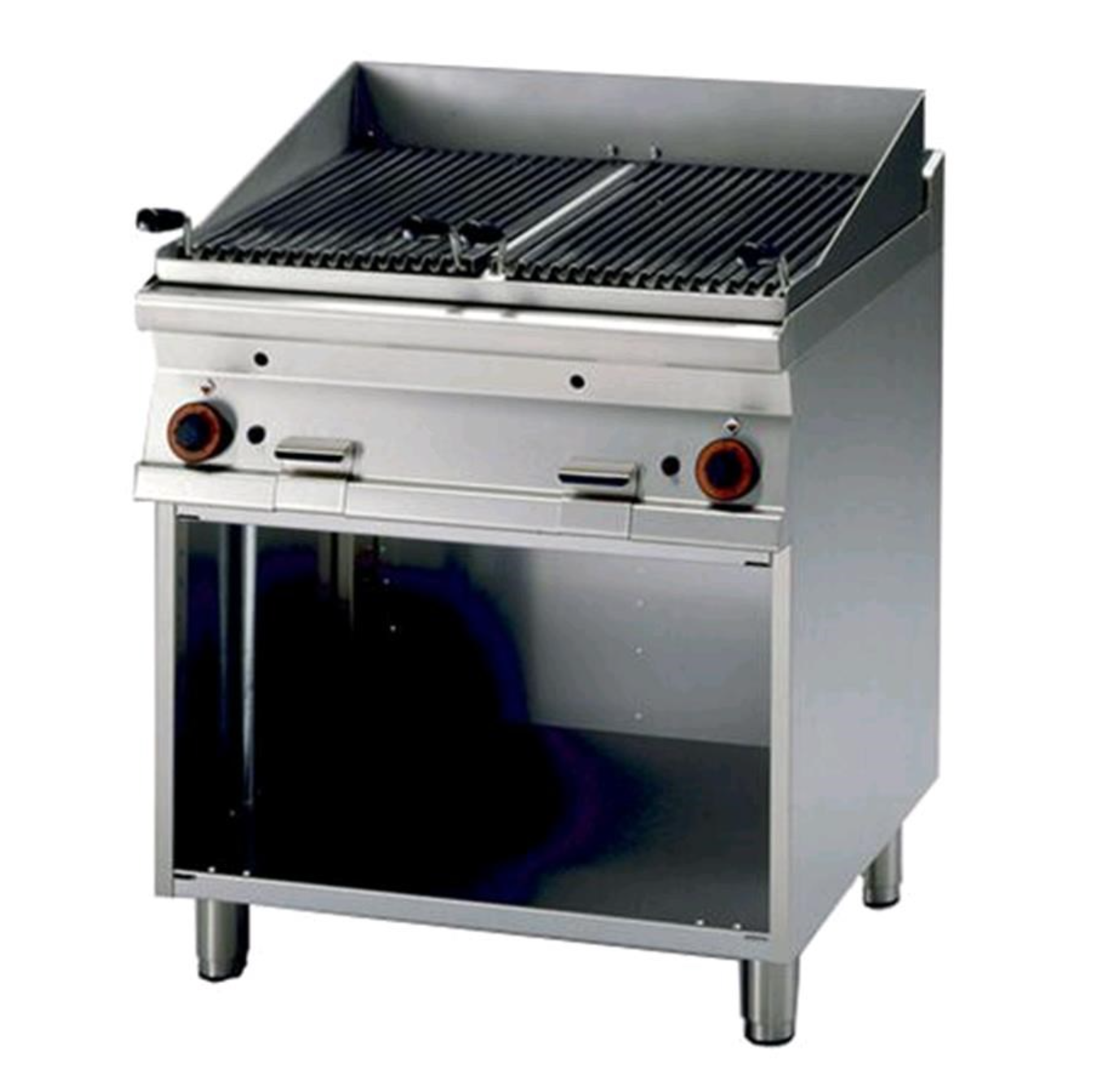 Queste griglie a pietra lavica su mobile a giorno saranno dotate di contenitore porta pietra per arroventarle a mezzo bruciatori sottostanti. Aiutandoti ad ottenere una cottura simile a quelle sulla brace di legna. Dotate di bruciatori con fiamma mezza pilota ad accensione piezoelettrica, rubinetti con valvola sicurezza e termocoppia.