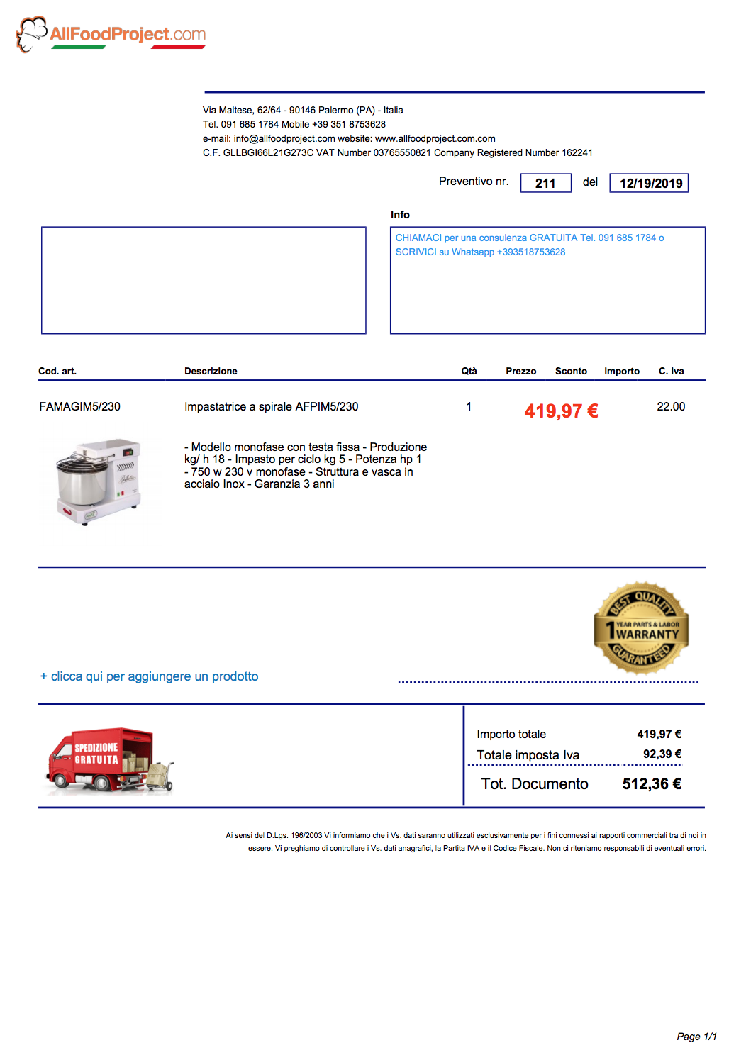 AllFoodProject ti da l’opportunità di realizzare un preventivo senza responsabilità, rapida e semplice. Ti servono solo pochi click, segui questa guida: