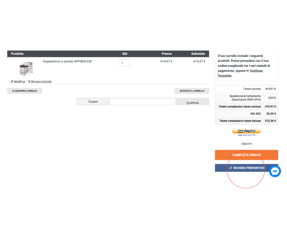 Quando avrai scelto gli articoli che desideri acquistare, vai nel carrello, ed in seguito clicca sul tasto RICHIEDI PREVENTIVO.