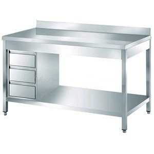 Tavolo acciaio da lavoro inox con cassettiera e alzatina